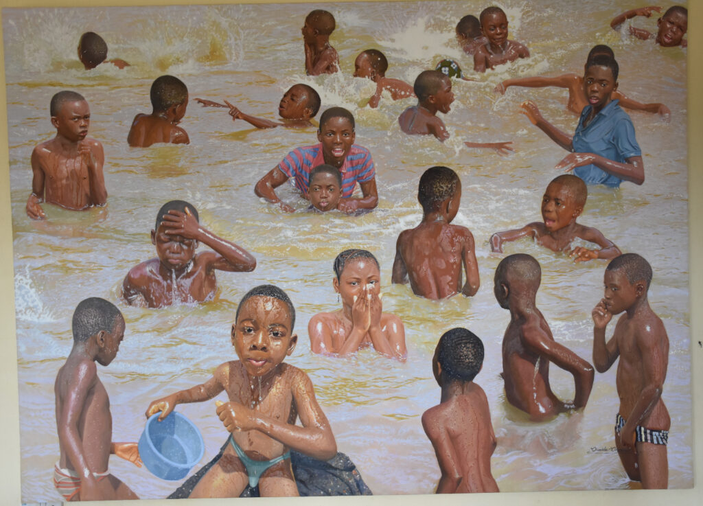 New York Art Life: Finally, let’s talk about your extraordinary artistic style. Your hyperrealist paintings focus on everyday African life, particularly children and market scenes. What draws you to these subjects, and how do you approach capturing their essence? Are there any artists who particularly inspire you?